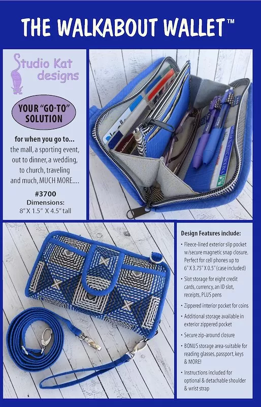 BONUS instructions included: for a detachable crossbody strap and wrist strap